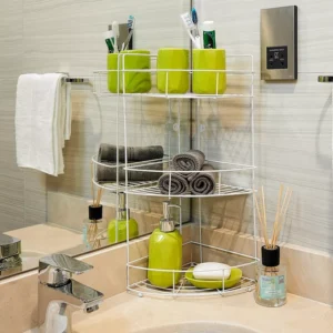 Featuring three tiers that offer ample space for keeping bath essentials like body wash, shampoo, etc, this caddie is a must-have pick for your shower area. Crafted from metal, this durable piece can easily be affixed on a wall in your bathroom.