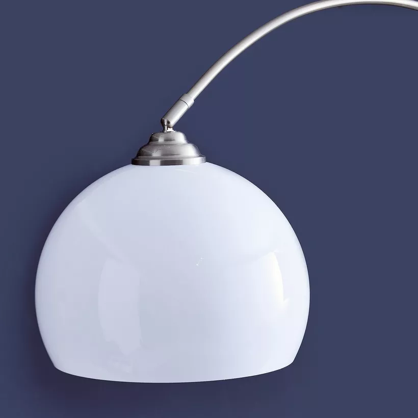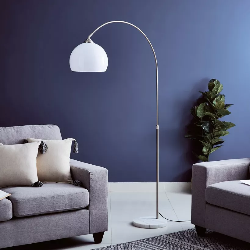 Showcasing a modern design, this floor lamp with its arc shape is a fine decor pick for your living room. Set atop a circular base, this piece flaunts a sleek stem that makes it extra stylish. This electrical lamp requires an E14 bulb to function with maximum efficiency. It can be wiped clean regularly for maintenance.