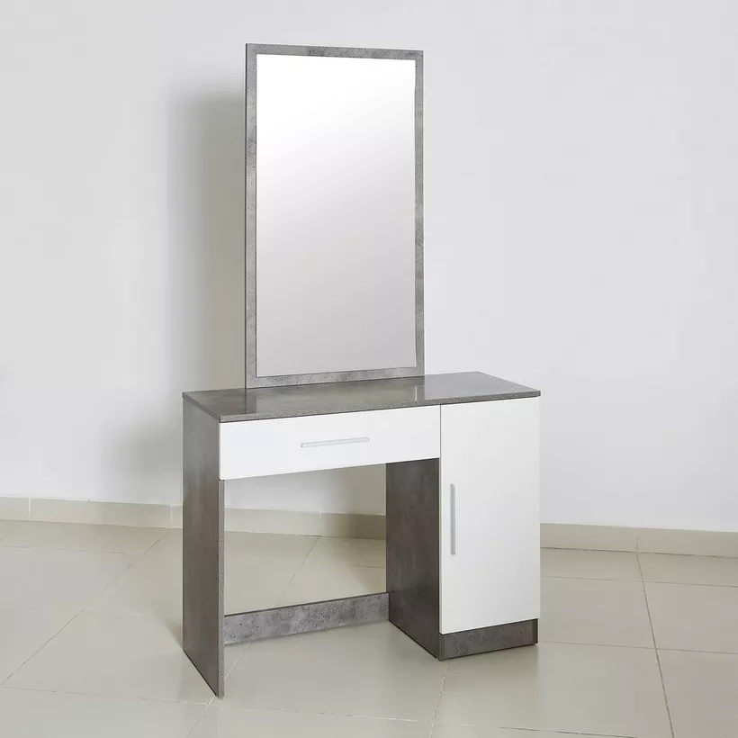 Flaunting a subtly modish tone, this dresser is high on aesthetics and functionality. It sports a tall-standing rectangular mirror and comes with a pull-out drawer and a storage cabinet to hold a range of essentials. The durable piece is made of engineered wood and is enhanced with a melamine finish. The melamine finish makes the dresser resistant to scratches and stains.